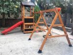 Earth Nature Aires De JeuxNotre produit à seule tour et balançoire pour aire de jeu comprend les fonctions essentielles de balancer et glisser.