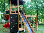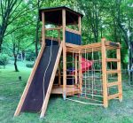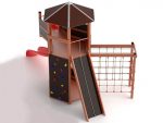 Earth Nature PlaygroundsWhile playing in Hexagon Earth Nature,kids can test their physical skills.They can climb up to the higher platform by rope connected climbing wall,they can climb the grip-stones climbing wall or they can just use the wooden steps to reach up.