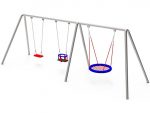 Silver PlaygroundsOne of the all-time favourites of the playgrounds areas: The Big Double Metal swing.This product has a solid metal construction beam,first class metal posts,stainlees steel connection hardware and Elyseean safety norms tested swing seats.